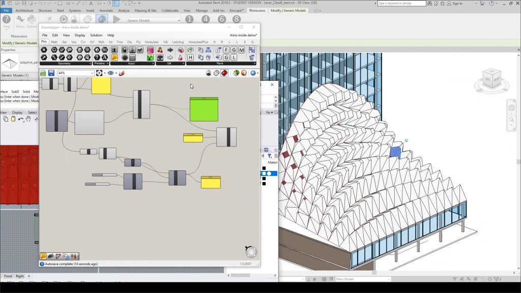 I recently attended an event hosted by the San Francisco Computational Design Institute (SFSDI) in which I learnt about a new initiative by McNeel & Associates, developers of Rhino, to bring the power of Rhino and its Grasshopper add-in to Revit. While Revit already integrates with Autodesk’s own Dynamo application for design scripting, the ability to now also be able to use Grasshopper for this has the potential to dramatically improve Revit’s modeling capabilities, given that Grasshopper is the most well-established, sophisticated, and widely-used algorithmic modeling application currently available.